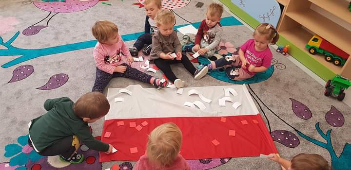 Przez cały tydzień dzieci uczyły się podstaw patriotyzmu. Zostały zapoznane z symbolami Naszego Kraju- poznały barwy narodowe, jak wygląda flaga, godło. W ramach konkursu dzieci uczestniczyły w spotkaniu Wójtem Gminy Czarnocin- Romanem Miksą- podczas spotkania dzieci wysłuchały wierszy związanych z patriotyzmem